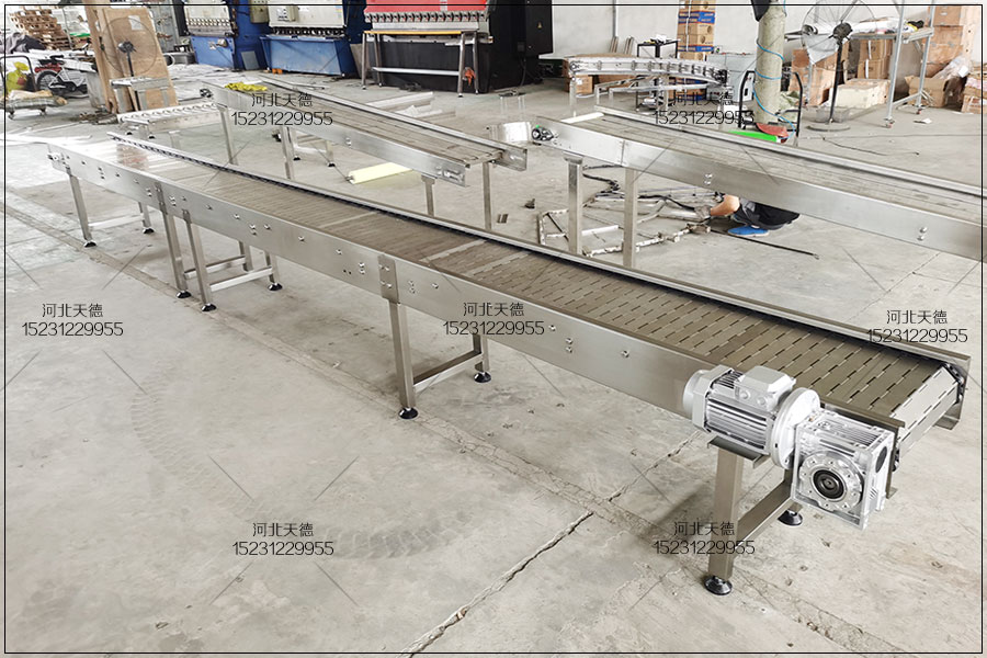 鏈板輸送機歡迎來電定制河北天德雞胸肉油炸流水線鏈板輸送機:15231229955 網址:http://m.lu-tong.com.cn/