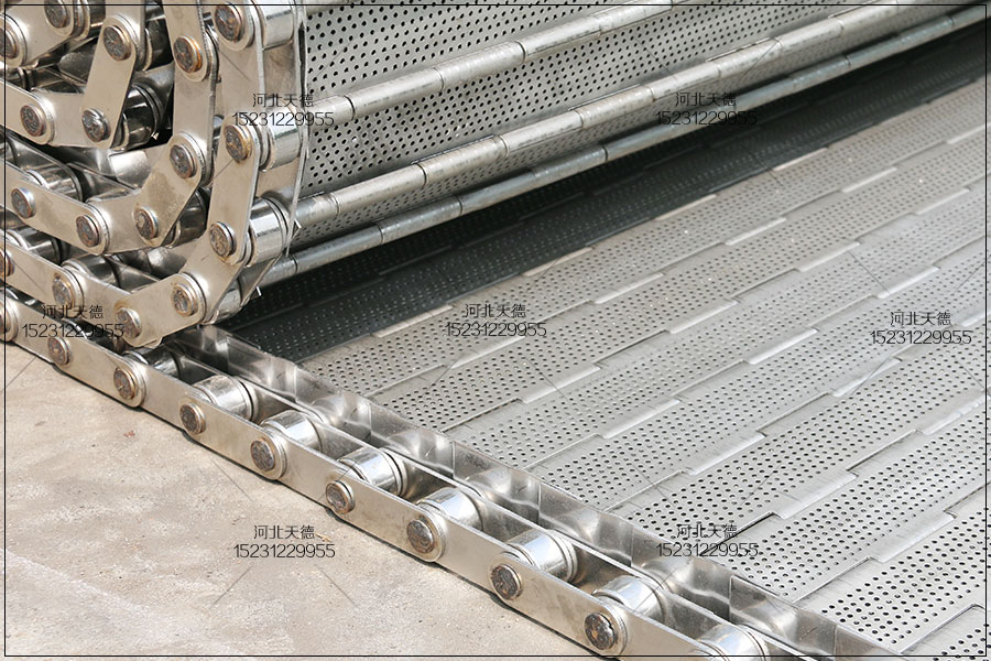 2、青豆清洗烘干輸送機不銹鋼鏈板輸送帶的緊不緊應(yīng)適合,過緊提升 功率耗費,承軸易損壞;松馳傳動鏈條易搖晃和滑鏈。傳動鏈條的緊松水平為:從不銹鋼鏈板談及或往下壓,兩傳 動鏈條管理辦距的約為百分之二-百分之三。