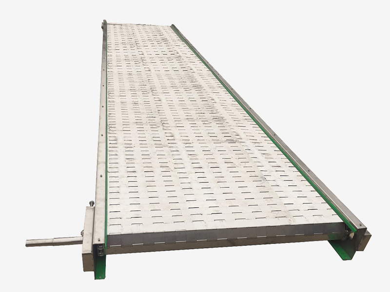 作為合頁鏈板輸送機使用的大市場就是速凍領域,速凍領域中果蔬速凍可以說是多的使用行業。果蔬速凍所使用的鏈板式輸送機規格型號比較常規,全部304或316不銹鋼結構;節距31.75mm或38.1mm;厚度1mm~1.5mm;寬度300mm-900mm;一般沖孔3mm~4mm,這種規格的鏈板輸送機適應果蔬的輸送和速凍作業。