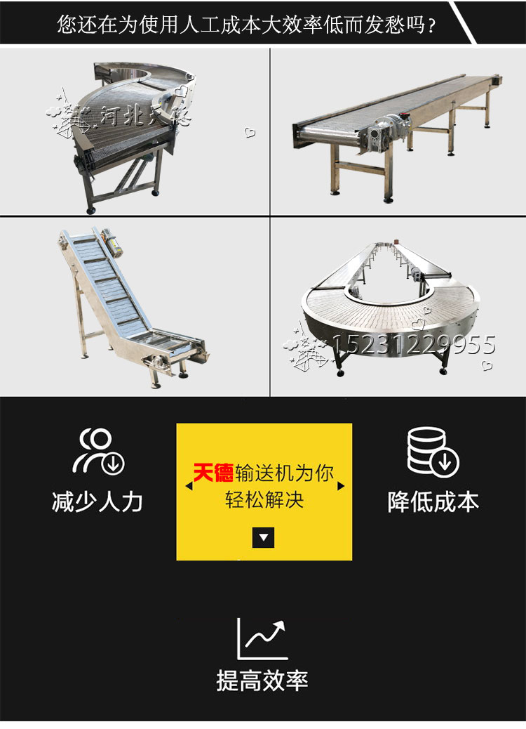 5.設備布局靈活。可以在一條輸送線上完成水平、傾斜和轉彎輸送。