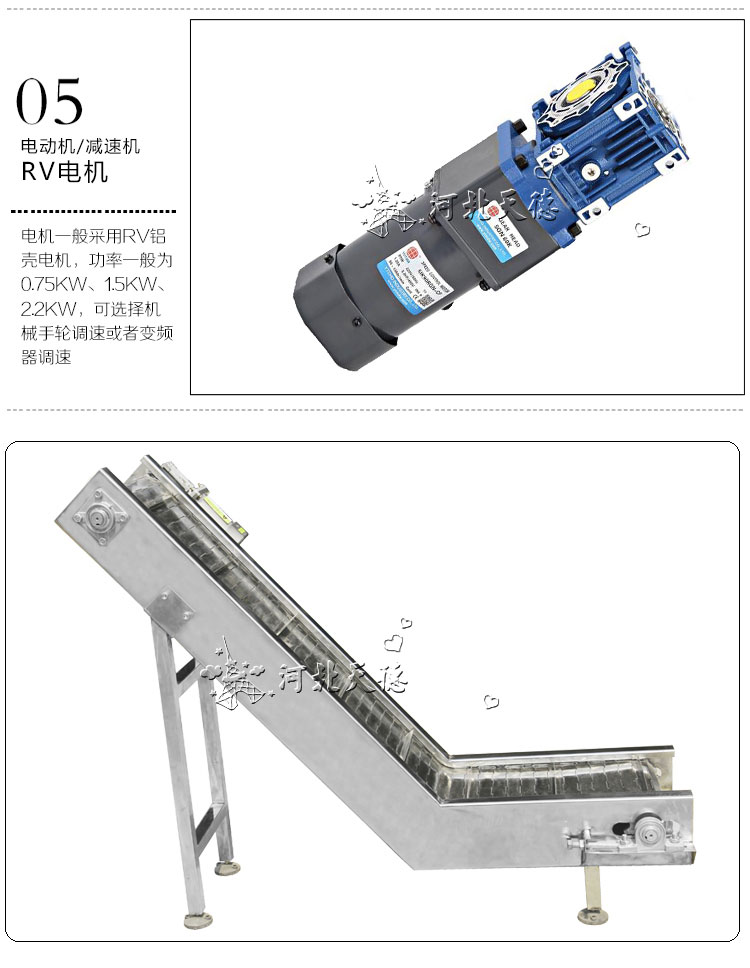 鏈板材質:碳鋼、不銹鋼、熱塑鏈,根據您的產品的需要可選取不同寬度、不同形狀的鏈板來完成平面輸送、平面轉彎、提升、下降等要求。